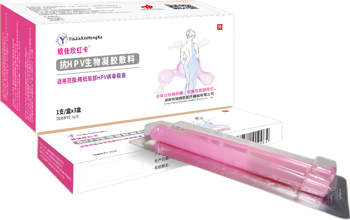 北京億騰飛醫藥先后與江西永祥藥業和湖南特瑞精密醫療器械有限公司簽署戰略合作協議,將公司最新研究成果進行醫療轉化。分別拿到了藥監局頒發的銀佳欣紅卡—抗HPV生物凝膠敷料的產品注冊文件,適用范圍:降低局部HPV病毒的載量。